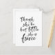 Élégant script de brosse noire de la citation "bien qu'elle soit peu, elle est féroce" de A Midsummer Night's Dream de William Shakespeare contre un arrière - plan blanc. *Veuillez noter que le filigrane Zazzle qui apparaît dans l'aperçu du zoom n'apparaîtra PAS sur le produit imprimé final. © Bois de rose et agrumes