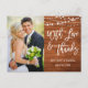 Moderne Brosse Script, Bois Rustique et Guirlandes Lumineuses, Avec Amour et Remerciements Mariage Photo Remerciements Carte Postale
