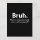 Bruh Typographie Bruh Carte postale conçue par Nisha Prabhu. Envoyez un peu d'attitude avec cette carte postale de typographie brutale ! Parfait pour toutes les occasions, ce design audacieux et accrocheur fera certainement une déclaration. Que vous disiez "hey bro" ou que vous souhaitiez simplement ajouter un petit flair à votre courrier, cette carte postale est le choix idéal. Ajoutez un peu de zazzle à votre correspondance avec ce design cool et moderne. Commandez les vôtres dès aujourd'hui !