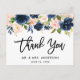 Carte Postale Brush Script bleu rose Mariage Merci