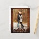 Brosse moderne Script, Bois rustique Enregistrer la date Fiançailles Couple Photo Carte Postale