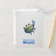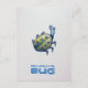 Carte postale avec un joli bogue mécanique bleu-vert dessiné au crayon. La créature ressemble à une coccinelle et a des noix et des boulons au lieu de points.