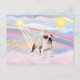 Un Bulldog anglais brun et blanc essaie ses ailes parmi les nuages moelleux du ciel avant qu'ils ne soient libres d'entrer dans le Rainbow Bridge où anges et amis attendent.l