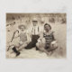 Cette carte postale présente une photo vintage de trois hommes étant des clochards de plage.