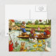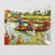 Adorable oeuvre d'art vintage de lapins faisant une promenade en bateau le long d'une rivière. D'autres animaux sont partout
