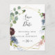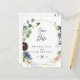 Cette carte postale en or bordeaux sauve la date parfaite pour un mariage d'hiver. L'élégant design boho comprend des fleurs couleur marine, rose vif et des fleurs à l'ombre du vin avec des détails artistiques au crayon.