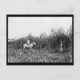 Trois personnes, dont l'une à cheval, dans un champ de canne à sucre.