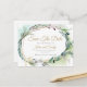 Un moyen pratique de demander à vos invités d'enregistrer la date est par carte postale. Cet élégant design présente de jolis feuilles d'olivier autour d'un cadre géométrique doré. Le texte est facilement personnalisé et les couleurs de l'arrière - plan et du texte peuvent être modifiées si vous le souhaitez