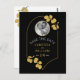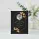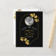 Cette superbe photo Save the Date annonce carte postale présente un design époustouflant inspiré des bijoux en or, avec un mélange de motifs en cadre et en feuilles. Il a un look moderne et affiche élégamment votre texte personnalisé dans une garniture dorée qui tourne en haut et se termine en bas, entourée de branches et de feuillage sur fond noir.