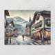 Un cadeau parfait pour les amateurs de voyage et de café. Une aquarelle d'une vue imprenable sur la rue dans un petit café d'Interlaken, Suisse. La scène capture un café pittoresque et animé, où les habitants savourent leur café du matin sur fond de montagnes lointaines. La palette de couleurs est sobre, avec des tons gris, bleus et terreux qui rehaussent l'atmosphère tranquille et moelleuse. Les personnes habillées de vêtements chauds semblent détendues et de contenu, se mélangeant parfaitement avec l'environnement suisse serein. Cette représentation met en valeur non seulement le charme du café, mais aussi les vibes locales uniques d'Interlaken.