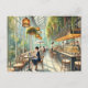 Parfait pour les amateurs de café et de voyage. La peinture à l'aquarelle saisit magnifiquement l'élégance sereine d'un Café à Dempsey Hill, à Singapour. Les hauts plafonds du café, les fenêtres en verre et le mobilier en bois foncé sont éclairés par la lumière du soleil, qui projette des motifs doux au sol. A l'intérieur, une femme en robe marine sirote un matcha latte en travaillant sur son ordinateur portable, et un groupe d'amis partage du gâteau au chocolat, leur rire se mêlant à l'ambiance vibrante. A l'extérieur, un couple se détend sous un parapluie rayé entouré de fleurs tropicales et de verdure luxuriante, en dégustant des lattes glacées et des pâtisseries. Les plantes en cascade et les desserts colorés du comptoir du barista mettent en valeur le mélange harmonieux de tons terreux, de verts vibrants et de tons pastel, créant une scène tranquille mais animée.