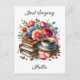 Une très jolie aquarelle d'aquarelle illustrant une pile de livres vintages, une tasse de thé ou de café et de jolies fleurs pensant à votre carte postale. Vous pouvez modifier tout le texte de la carte dans la zone de personnalisation.