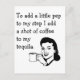 Carte postale avec un slogan drôle représentant une ménagère ivre aux yeux fous buvant de la téquila et du café, créée pour la Journée nationale de la téquila, célébrée le 24 juillet.