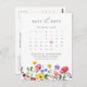 Célébrez votre histoire d'amour avec cet élégant calendrier floral, enregistrez la carte postale datant avec un design de fleur sauvage d'aquarelle et script de calligraphie moderne. Parfait pour un mariage de jardin, une cérémonie en plein air ou une célébration boho rustique, ce design mêle des éléments floral fantaisistes à une élégance intemporelle. Idéal pour les mariages d'été ou de printemps, l'art botanique dynamique et la disposition personnalisée vous permettent de customiser facilement avec les détails de votre événement. Qu'il s'agisse d'un mariage romantique ou d'une célébration d'inspiration vintage, cette invitation donne le ton parfait. Modifiez facilement les noms, les dates et les emplacements pour en faire le vôtre. Disponible en tant que modèle mariage imprimé et imprimable.