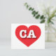 Cette carte postale est dotée d'un coeur rouge vif contenant les lettres coques maures, blanches et audacieuses CA, l'abréviation officielle de California, l'état d'or. Le verso de la carte postale est vide, en attendant vos sentiments manuscrits ou le texte customisé.