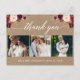 Calligraphie moderne, Elégante aquarelle Bourgogne Marsala Floral, Mariage 3 Photo Merci Kraft Carte postale