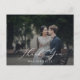 Cette superposition de photo sombre avec calligraphie délicate pour carte postale de remerciement est parfaite pour un mariage moderne. Le design minimaliste romantique présente une typographie blanche élégante et charmante sur un fond de photo avec un aspect sophistiqué. Personnalisez le dos de la carte postale avec vos noms, votre adresse de retour et un message de remerciement. Vous pouvez également laisser la section du modèle de message de remerciement vierge pour écrire à la main une note personnalisée et réfléchie sur chaque carte après leur arrivée.