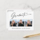 Tendance, moderne et élégante graduation 3 cartes postales de faire-part photo, avec éléments design de texte moderne avec script d'encre de calligraphie. Les photos du diplômé sur le devant de la carte sont astucieusement accentuées avec un dégradé délicat et minimaliste. Le dos de la carte offre des espaces de texte personnalisés pour des informations sur votre diplôme ou peut être effacé si vous souhaitez écrire un message à la main. Noir et blanc ou customiser facilement l'arrière - plan pour correspondre à la couleur primaire de votre école ou à n'importe quelle couleur de votre choix. Idéal pour les étudiants du secondaire, collégial et universitaire.
