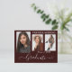 Belle, 3 photos, cartes postales de graduation avec script de calligraphie moderne en blanc sur bordeaux. Pour voir d'autres articles comme celui-ci, visitez mon magasin ici à "www.Zazzle.com/LakeViewCardCo". Merci