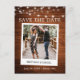 Moderne Simple Rétro Instantané Style Caméra Couple Photo Enregistrer La Date Photo Fiançailles Carte Postale - Rustic Country Wood, String Lights
