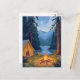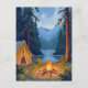 Carte Postale Camping Forêt Tente de feu de camp Aquarelle