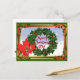 Festive salutations du Canada et des Canadiens. Jolie bordure dorée et rouge a des coins saints de défilement. Arrière - plan couvert de neige avec la couronne sainte et le castor canadien agitant le drapeau devant la feuille rouge. Le texte dit : Joyeux Noël Eh ! Customisez à l'intérieur des salutations, des messages et des zones de fermeture.