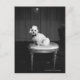 Carte Postale Caniche blanc assis sur le tabouret B&W