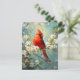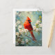 Une belle carte postale avec un cardinal vibrant perché au milieu de fleurs blanches délicates, capturant l'harmonie paisible de la nature dans un design artistique et étonnant.