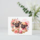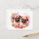 Une Mignonne Paire De Carlins De La Journée Valentines Accueillant Carte Postale Avec Roses Roses Roses Roses