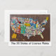 Fabriquées à la main à partir de plaques d'immatriculation américaines d'origine, ces cartes postales présentent "Les 50 Etats de Plaques de Licence", une oeuvre monumentale et un classique article d'Americana qui représente le produit fini de la série de cartes de Plaques de Licence du créateur de médias sociaux Ethan the License Plate Guy sur Instagram, TikTok et YouTube.