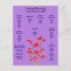 Un graphique simple mais joli avec toutes sortes de conseils d'aromathérapie listés. Il vous indique les arômes et huiles essentielles à utiliser pour l'insomnie, les piqûres et piqûres d'insectes, la dépression, et six autres. Comprend le basilic, le citron, la bergamote, le thé, la cannelle et bien d'autres. Nous vous proposons cette carte sous forme de prospectus, de carte postale et de carte de voeux, afin que vous puissiez l'envoyer à vos clients, et en tant qu'affiche pleine taille. Vous choisissez si vous voulez le cadrer ou non.