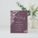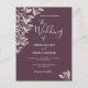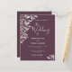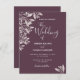 Un faire-part de mariage botanique branché en cassis, violet profond. Décoré de feuillage et de sprigs couleur rose poussiéreux. Écriture manuscrite moderne à grande main, typographie avec le texte : Le mariage de. Modèles pour vos prénoms et les détails mariages. Texte blanc. Retour : arrière - plan couleur cassis. Conseil : Si vous ne voulez pas qu'il ressemble à une carte postale, cliquez sur customiser, allez à l'arrière et retirez le séparateur et le timbre postal.