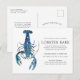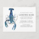 Cartes d'invitation personnalisées à thème homard bleu pour votre prochaine soirée homard ou événement de fruits de mer. Il présente une illustration de style aquarelle d'un homard bleu. Autour de cela se trouvent des espaces pour vos informations d'événement uniques.