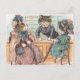 Illustration vintage adorable de deux femmes de chats plus âgées en robes longues assis au comptoir d'un magasin tandis que le commis se penche pour voir ce qu'elles veulent.