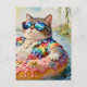 A cool cat enjoys a summer float trip in a inflatable glazed donut floatie fantasy AI generated art