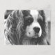 Photographie de portrait en noir et blanc, gros plan, d'un roi Charles Spaniel, beau et âme.