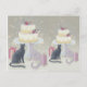 Une illustration douce et minimaliste de deux chats raffinés assis sous un gâteau à étages magnifiquement décoré, entourés de cadeaux délicats. Des couleurs douces et des détails élégants créent une esthétique chaleureuse et festive parfaite pour la décoration intérieure et la papeterie.