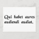 La phrase "Celui qui a des oreilles, qu'il comprenne comment écouter" en latin.