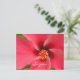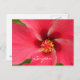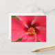 Cette carte postale souvenir Saipan présente une belle photo macro du centre d'un bel hibiscus rose, rouge et blanc avec un style jaune et rouge et des accents d'un arrière - plan vert de feuillage regardant de l'intérieur ses pétales délicats.