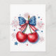 Carte Postale Cerises avec Coquette Bow 4 juillet Américain
