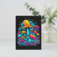 Art néon coloré avec champignons et fleurs bleus et roses et un arrière - plan noir.