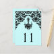 Cette carte postale bleu et noir damassé numéro de table d'aqua correspond au faire-part de mariage ci-dessous. *** Vous devez changer le numéro 11 à chaque numéro dont vous avez besoin, l'ajouter à votre panier, puis revenir et répéter le processus avec chaque numéro dont vous avez besoin. Si vous avez des questions, contactez-moi à niteowlstudio@gmail.com.