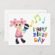 Un adorable petit chanteur chantant joyeux anniversaire. Une carte postale d'anniversaire colorée pour l'anniversaire de n'importe qui.