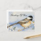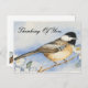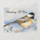 Envoyez un message "Pensée pour toi" avec une charmante mésange posée dans de belles fleurs sur cette carte postale pour les amoureux des oiseaux. Des détails réalistes en noir, crème et bleu sont tirés de ma peinture à l'aquarelle originale.