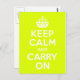 Chartreuse et blanc "Keep Calm and Carry On" version moderne de l'affiche classique.