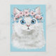 Ce design présente un joli chaton blanc portant un halo aux fleurs rose et bleue.