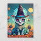 Carte Postale Chat à sorcière funky