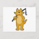 Carte Postale Chat au pêche avec canne à pêche & poisson