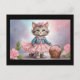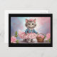 Carte Postale Chat aux fleurs roses en robe avec panier à fleurs