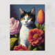 Carte Postale chat avec fleurs